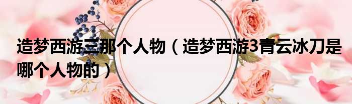造夢西游三那個人物(造夢西游3青云冰刀是哪個人物的)