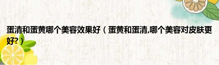 大家好,精選小編來為大家解答以上的問題。蛋清和蛋黃哪個美容效果好,蛋黃和蛋清,哪個美容對皮膚更好?很多人還不知道,現在讓我們一起來看看吧!