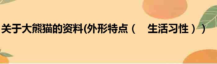 導讀 大家好,精選小編來為大家解答以上的問題。關于大熊貓的資料(外形特點, 生活習性很多人還不知道,現在讓我們一起來看看吧!大熊貓(學