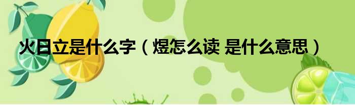 大家好,精選小編來為大家解答以上的問題。火日立是什么字,煜怎么讀 是什么意思很多人還不知道,現在讓我們一起來看看吧!