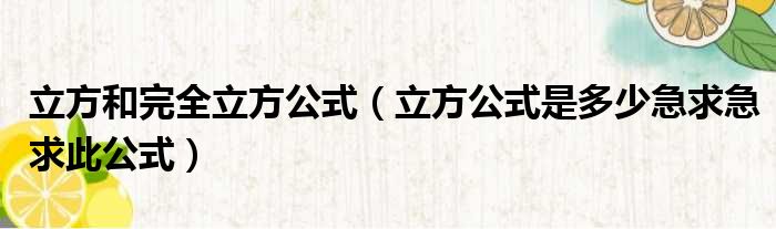 導讀 大家好,精選小編來為大家解答以上的問題。立方和完全立方公式,立方公式是多少急求急求此公式很多人還不知道,現在讓我們一起來看看吧!立