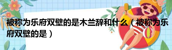 被稱為樂府雙壁的是木蘭辭和什么(被稱為樂府雙壁的是)