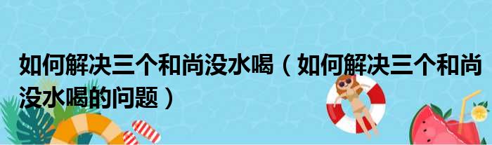 大家好,精選小編來為大家解答以上的問題。如何解決三個和尚沒水喝,如何解決三個和尚沒水喝的問題很多人還不知道,現在讓我們一起來看看吧!