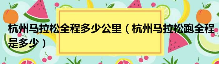 杭州馬拉松全程多少公里(杭州馬拉松跑全程是多少)