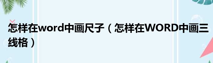 怎樣在word中畫尺子(怎樣在WORD中畫三線格)