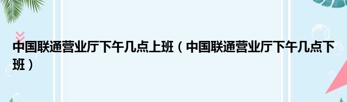中國聯通營業廳下午幾點上班(中國聯通營業廳下午幾點下班)