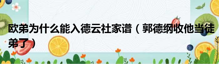 導讀 大家好,精選小編來為大家解答以上的問題。歐弟為什么能入德云社家譜,郭德綱收他當徒弟了很多人還不知道,現在讓我們一起來看看吧!1、歐