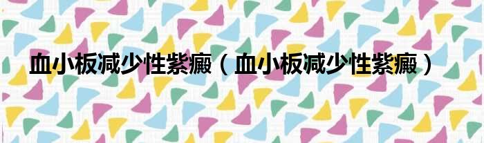 血小板減少性紫癜(血小板減少性紫癜)
