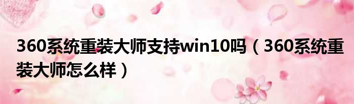 360系統重裝大師支持win10嗎(360系統重裝大師怎么樣)