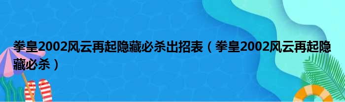 拳皇2002風云再起隱藏必殺出招表(拳皇2002風云再起隱藏必殺)