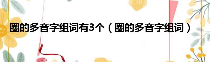 大家好,小霞來為大家解答以上的問題。圈的多音字組詞有3個,圈的多音字組詞這個很多人還不知道,現在讓我們一起來看看吧!