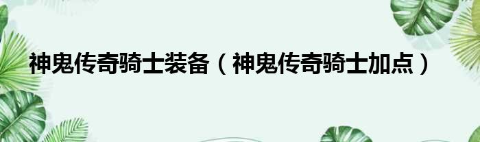 神鬼傳奇騎士裝備(神鬼傳奇騎士加點)