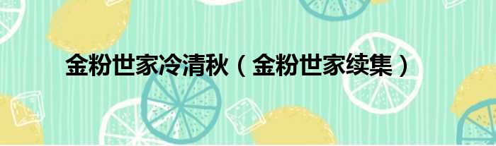 金粉世家冷清秋(金粉世家續集)