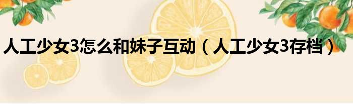人工少女3怎么和妹子互動(人工少女3存檔)