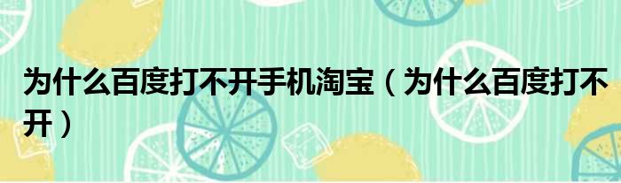 為什么百度打不開手機淘寶(為什么百度打不開)