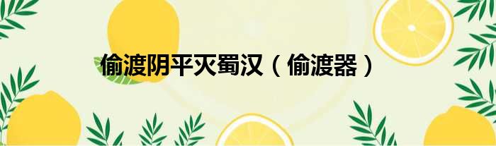 導讀 大家好,小霞來為大家解答以上的問題。偷渡陰平滅蜀漢,偷渡器這個很多人還不知道,現在讓我們一起來看看吧!1、根本就不用什么偷渡器,暈,