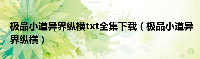 極品小道異界縱橫txt全集下載(極品小道異界縱橫)