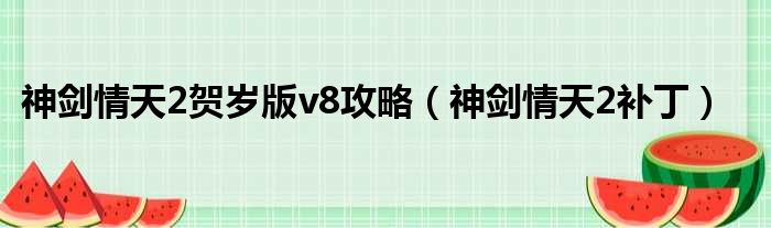 神劍情天2賀歲版v8攻略(神劍情天2補丁)