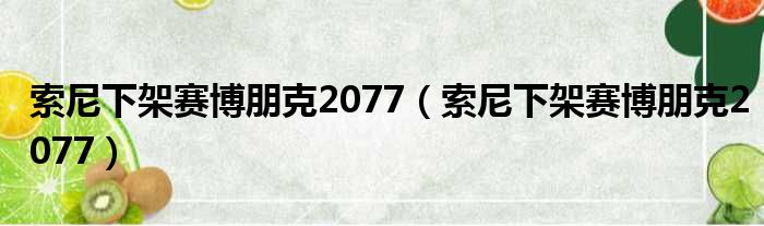 索尼下架賽博朋克2077(索尼下架賽博朋克2077)