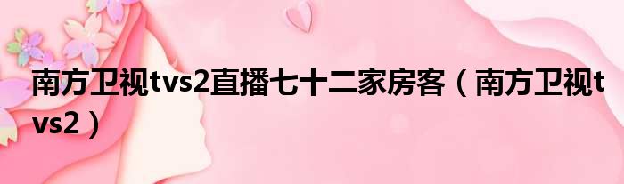 大家好,小霞來為大家解答以上的問題。南方衛視tvs2直播七十二家房客,南方衛視tvs2這個很多人還不知道,現在讓我們一起來看看吧!