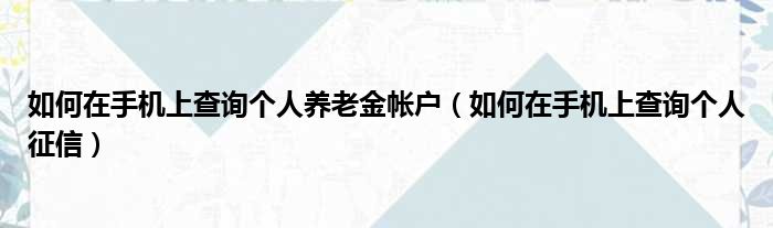 如何在手機上查詢個人養老金帳戶(如何在手機上查詢個人征信)