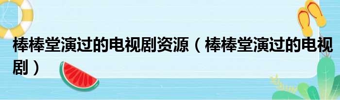 棒棒堂演過的電視劇資源(棒棒堂演過的電視劇)