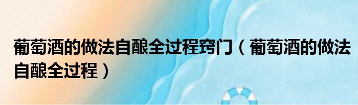 葡萄酒的做法自釀全過程竅門(葡萄酒的做法自釀全過程)