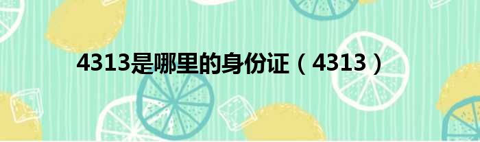 大家好,小霞來為大家解答以上的問題。4313是哪里的身份證,4313這個很多人還不知道,現在讓我們一起來看看吧!