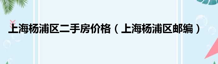 上海楊浦區二手房價格(上海楊浦區郵編)
