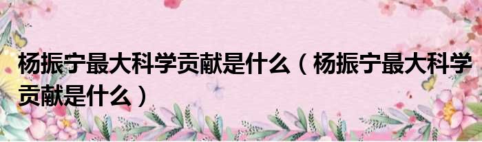 楊振寧最大科學貢獻是什么(楊振寧最大科學貢獻是什么)