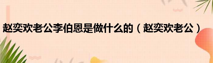 趙奕歡老公李伯恩是做什么的(趙奕歡老公)