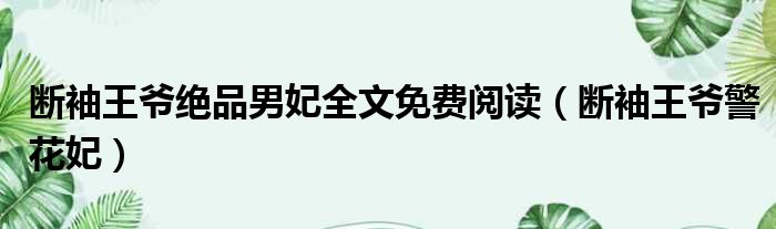 大家好,小霞來為大家解答以上的問題。斷袖王爺絕品男妃全文免費閱讀,斷袖王爺警花妃這個很多人還不知道,現在讓我們一起來看看吧!