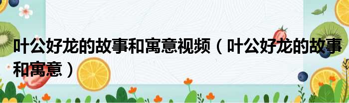 葉公好龍的故事和寓意視頻(葉公好龍的故事和寓意)