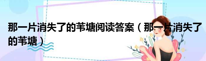 大家好,小霞來為大家解答以上的問題。那一片消失了的葦塘閱讀答案,那一片消失了的葦塘這個很多人還不知道,現在讓我們一起來看看吧!