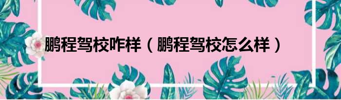鵬程駕校咋樣(鵬程駕校怎么樣)