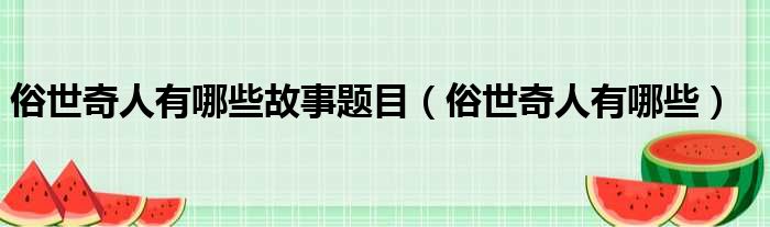 俗世奇人有哪些故事題目(俗世奇人有哪些)