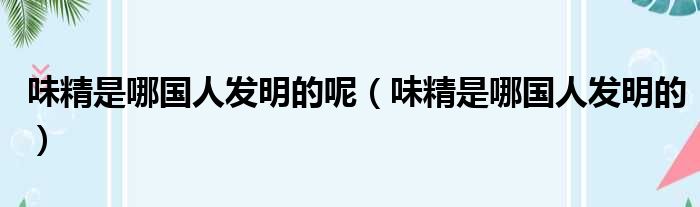 味精是哪國人發明的呢(味精是哪國人發明的)