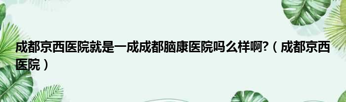 成都京西醫院就是一成成都腦康醫院嗎么樣啊?(成都京西醫院)