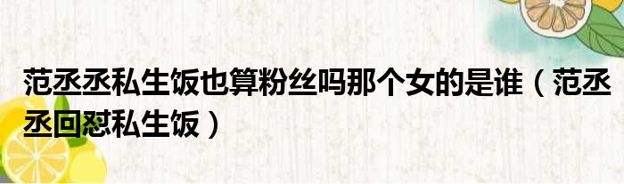 大家好,小霞來為大家解答以上的問題。范丞丞私生飯也算粉絲嗎那個女的是誰,范丞丞回懟私生飯這個很多人還不知道,現在讓我們一起來看看吧!