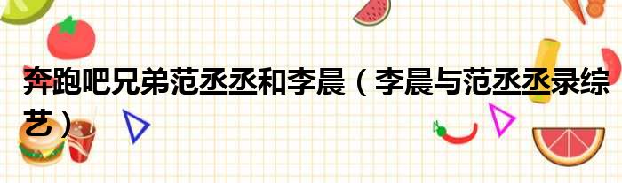 奔跑吧兄弟范丞丞和李晨(李晨與范丞丞錄綜藝)