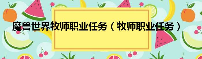 大家好,小霞來為大家解答以上的問題。魔獸世界牧師職業任務,牧師職業任務這個很多人還不知道,現在讓我們一起來看看吧!