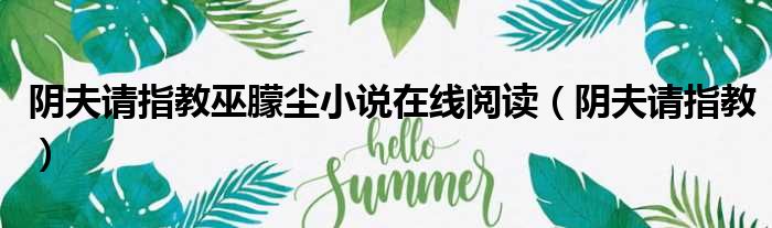 導讀 大家好,小霞來為大家解答以上的問題。陰夫請指教巫朦塵小說在線閱讀,陰夫請指教這個很多人還不知道,現在讓我們一起來看看吧!1、這里可以