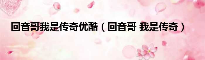 回音哥我是傳奇優酷(回音哥 我是傳奇)