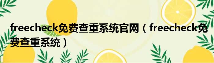 freecheck免費查重系統官網(freecheck免費查重系統)