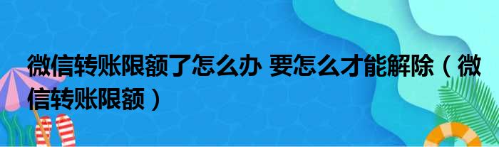微信轉賬限額了怎么辦 要怎么才能解除(微信轉賬限額)