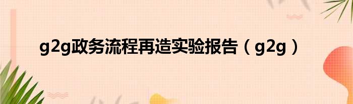 大家好,小霞來為大家解答以上的問題。g2g政務流程再造實驗報告,g2g這個很多人還不知道,現在讓我們一起來看看吧!