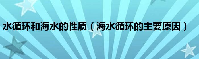 大家好,小霞來為大家解答以上的問題。水循環和海水的性質,海水循環的主要原因這個很多人還不知道,現在讓我們一起來看看吧!