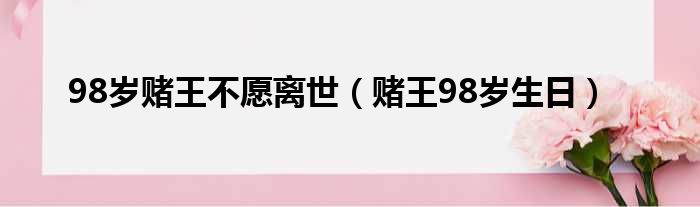 大家好,小霞來為大家解答以上的問題。98歲賭王不愿離世,賭王98歲生日這個很多人還不知道,現在讓我們一起來看看吧!