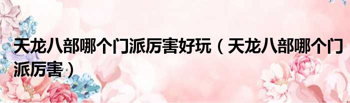 天龍八部哪個門派厲害好玩(天龍八部哪個門派厲害)