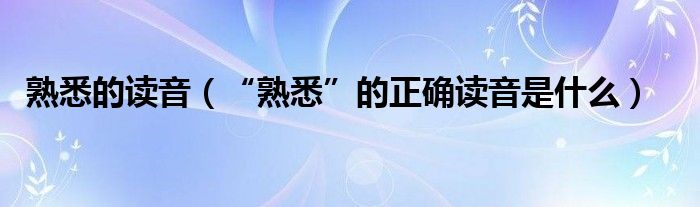 熟悉的讀音(“熟悉”的正確讀音是什么)